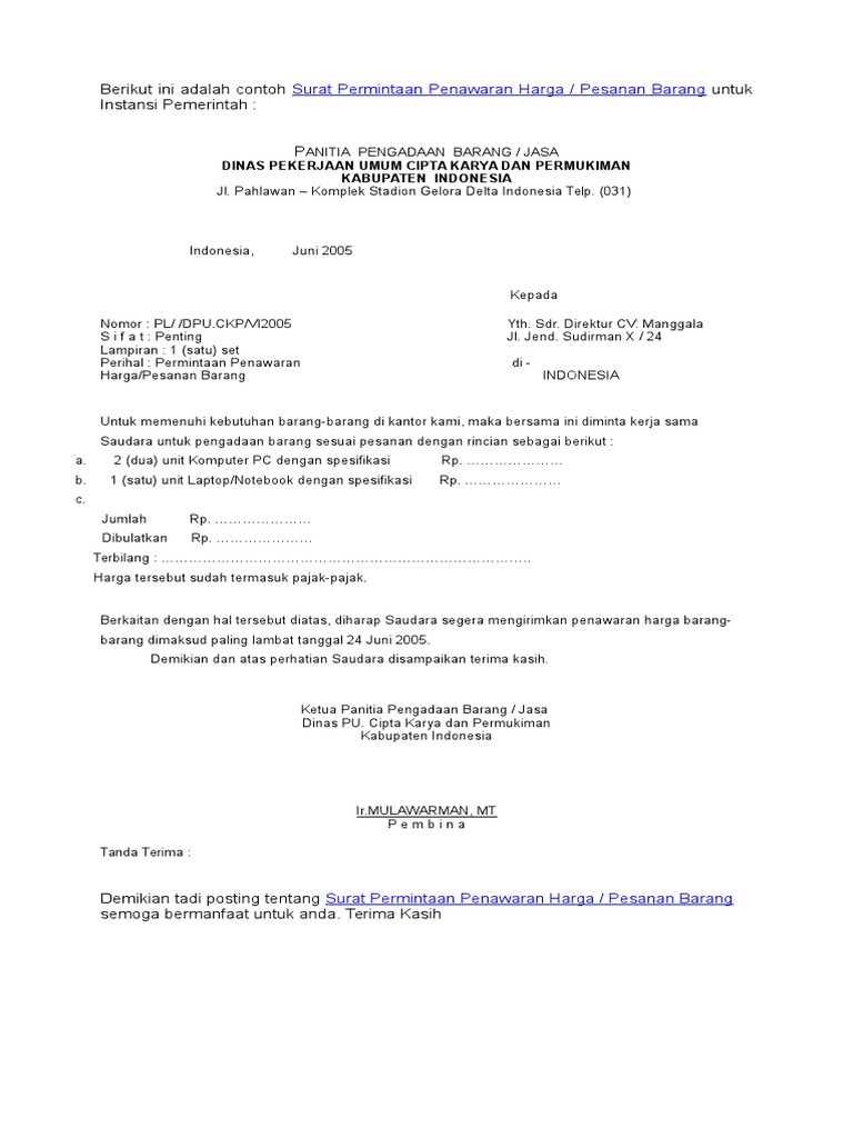 Surat diatas merupakan contoh surat penawaran harga barang yang dikirimkan oleh pt maju komputer dengan maksud untuk menawarkan produk elektronik mereka kepada pimpinan pt. Mulai dari surat penawaran kerjasama, barang, produk, jasa, paket wisata, dll. Kumpulan surat penawaran barang, jasa, dan kerjasama (rekomendasi). Misalkan anda adalah seseorang yang baru bergerak dalam akan tetapi, pada beberapa perusahaan tertentu yang dengan skala besar anda di haruskan membuat sebuah surat penawaran dan permintaan barang. Permintaan penawaran barang kepada pd.